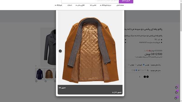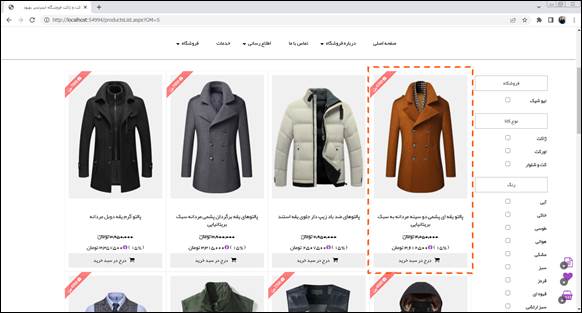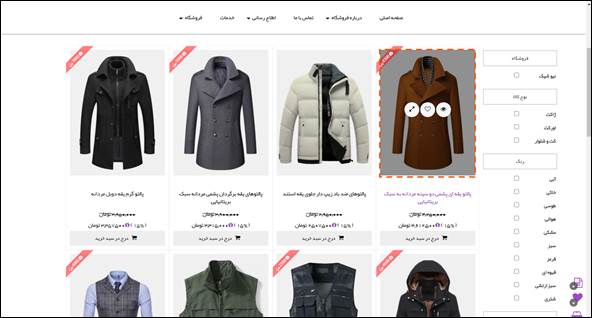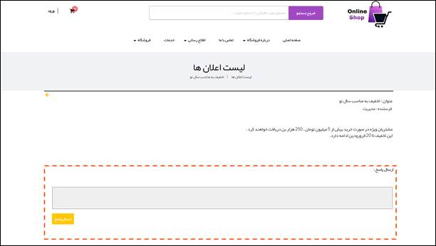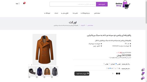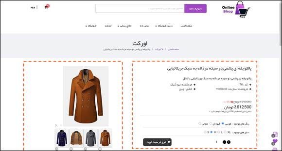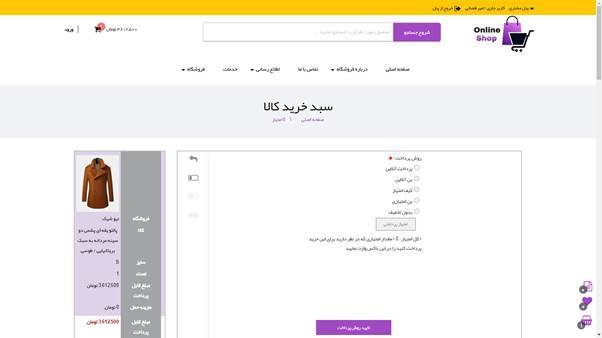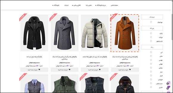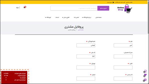 بازدیدکننده فروشگاه می تواند وارد گزینه های این