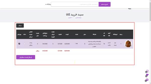 با کلیک روی آیکون سبد خرید ، وارد سبد خرید کالا