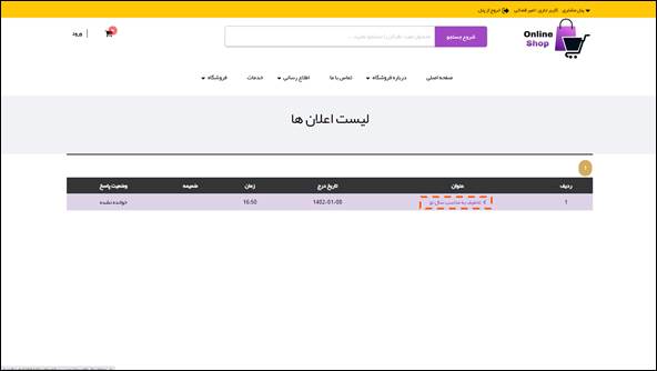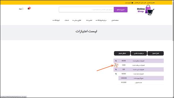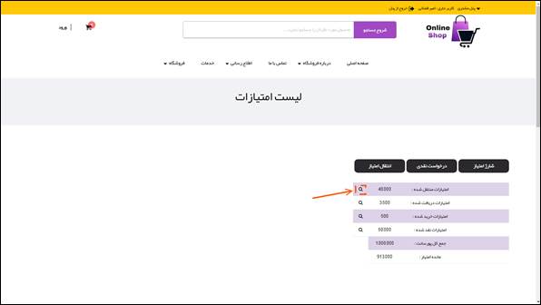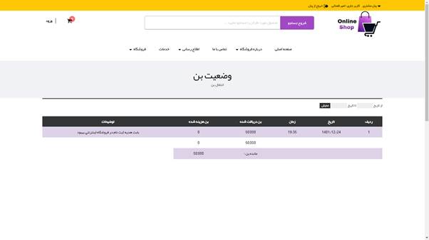 هایی که از فروشگاه داشته است را مشاهده می نماید.
