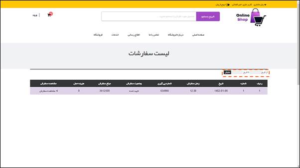بعد از پرداخت آنلاین وارد بخش سفارشات می شود و سفارش خود را مشاهده