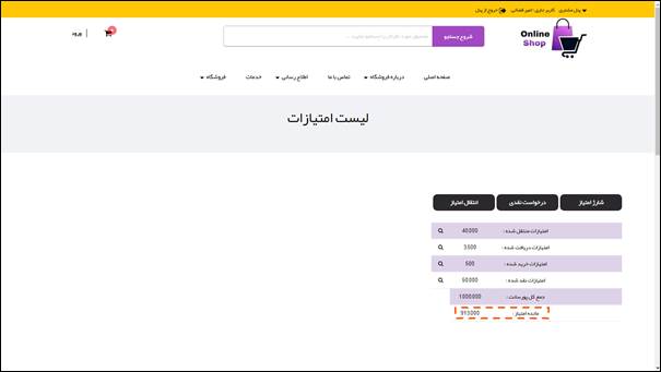 مانده امتیاز مشتری در باشگاه نمایش داده می شود.